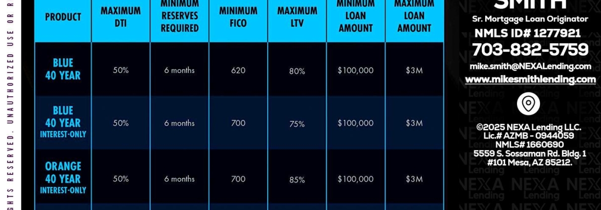 Hi, my name is Mike Smith. I’m a Loan Officer with NEXA Lending LLC., offering personalized mortgage solutions, fast customized quotes, great rates and service with integrity.