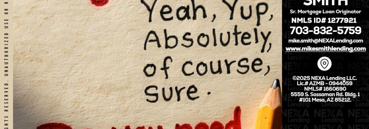 Hi, my name is Mike Smith. I’m a Loan Officer with NEXA Lending LLC., offering personalized mortgage solutions, fast customized quotes, great rates and service with integrity.