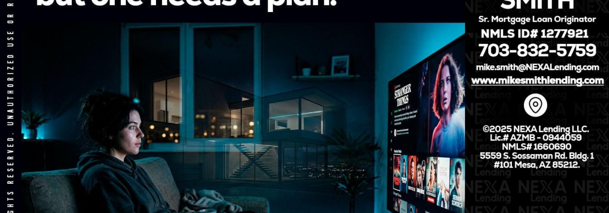 BINGE WATCHING - Mike Smith -Senior Mortgage Loan OriginatorHi, my name is Mike Smith. I’m a Loan Officer with NEXA Lending LLC., offering personalized mortgage solutions, fast customized quotes, great rates and service with integrity.