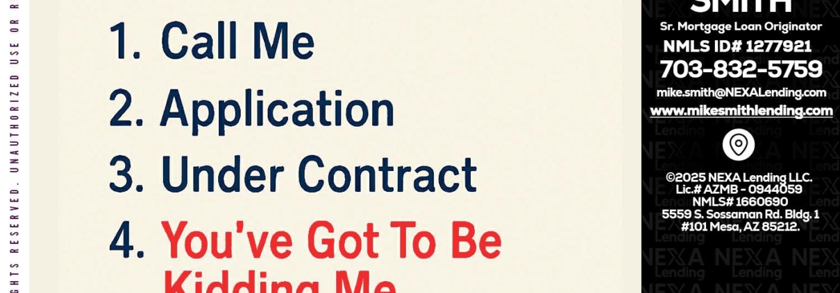 Hi, my name is Mike Smith. I’m a Loan Officer with NEXA Lending LLC., offering personalized mortgage solutions, fast customized quotes, great rates and service with integrity.