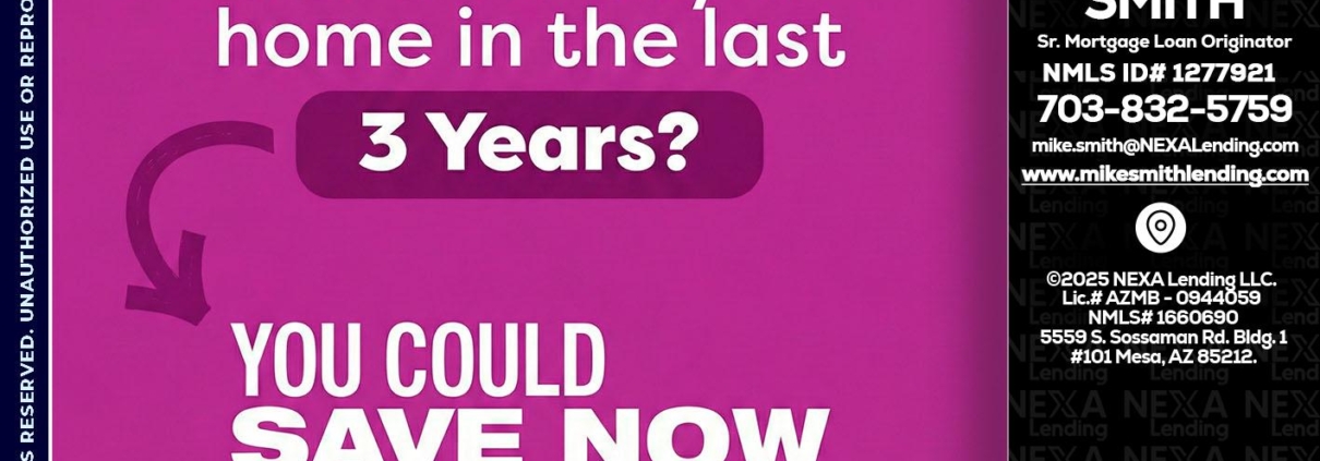 Hi, my name is Mike Smith. I’m a Loan Officer with NEXA Lending LLC., offering personalized mortgage solutions, fast customized quotes, great rates and service with integrity.