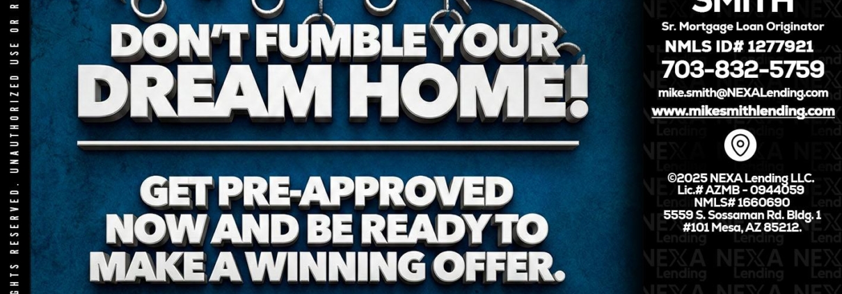 Hi, my name is Mike Smith. I’m a Loan Officer with NEXA Lending LLC., offering personalized mortgage solutions, fast customized quotes, great rates and service with integrity.