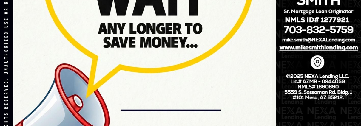 DONT WAIT - Mike Smith -Senior Mortgage Loan OriginatorHi, my name is Mike Smith. I’m a Loan Officer with NEXA Lending LLC., offering personalized mortgage solutions, fast customized quotes, great rates and service with integrity.