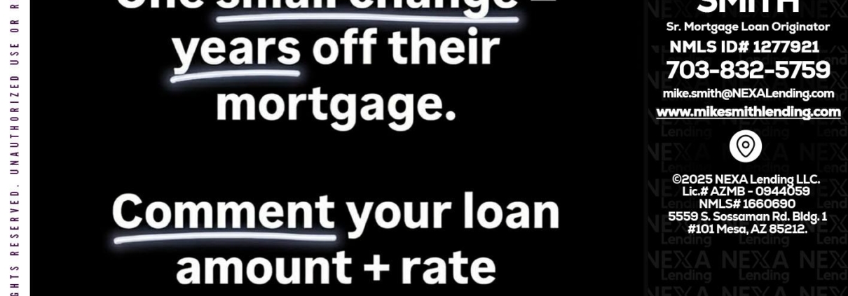 Hi, my name is Mike Smith. I’m a Loan Officer with NEXA Lending LLC., offering personalized mortgage solutions, fast customized quotes, great rates and service with integrity.
