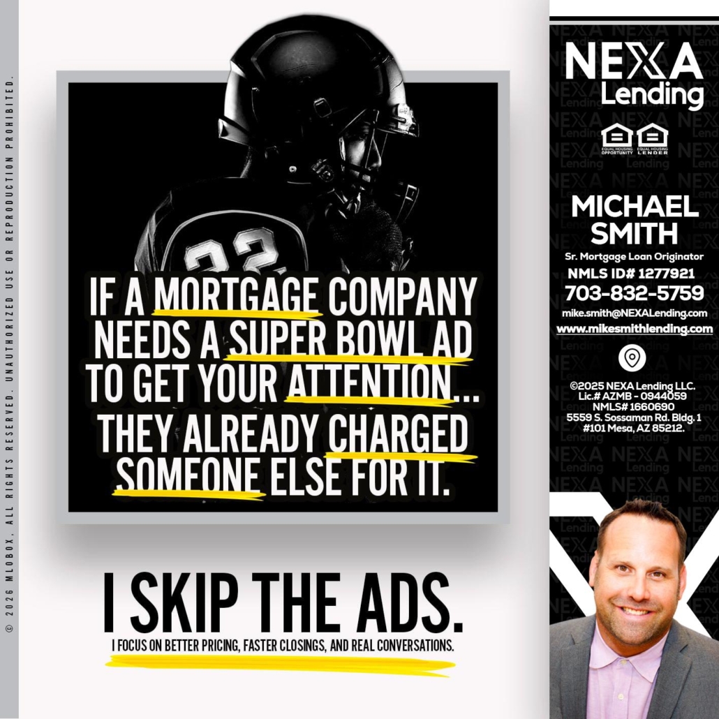 if a mortgage ad - Mike Smith -Senior Mortgage Loan OriginatorHi, my name is Mike Smith. I’m a Loan Officer with NEXA Lending LLC., offering personalized mortgage solutions, fast customized quotes, great rates and service with integrity.