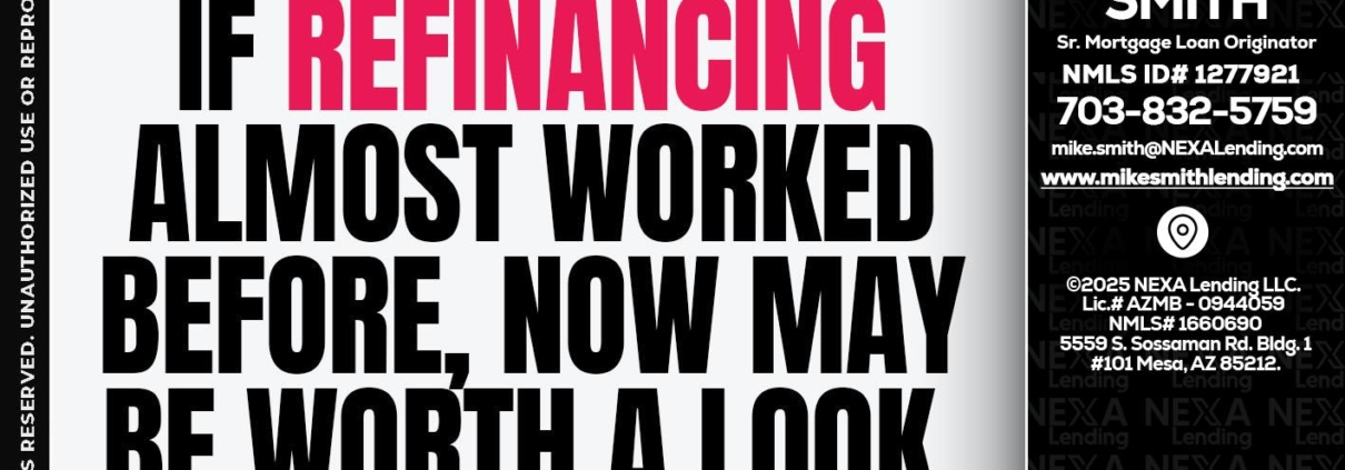 Hi, my name is Mike Smith. I’m a Loan Officer with NEXA Lending LLC., offering personalized mortgage solutions, fast customized quotes, great rates and service with integrity.