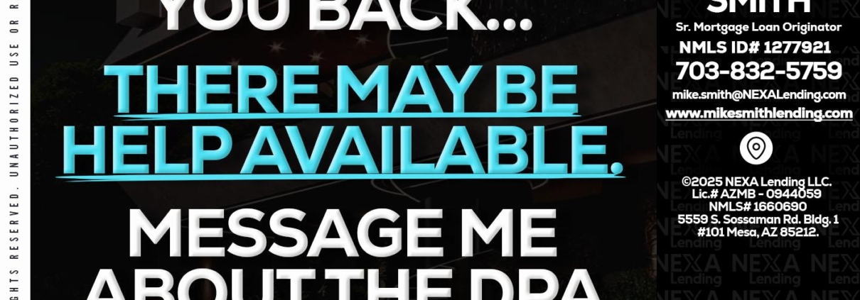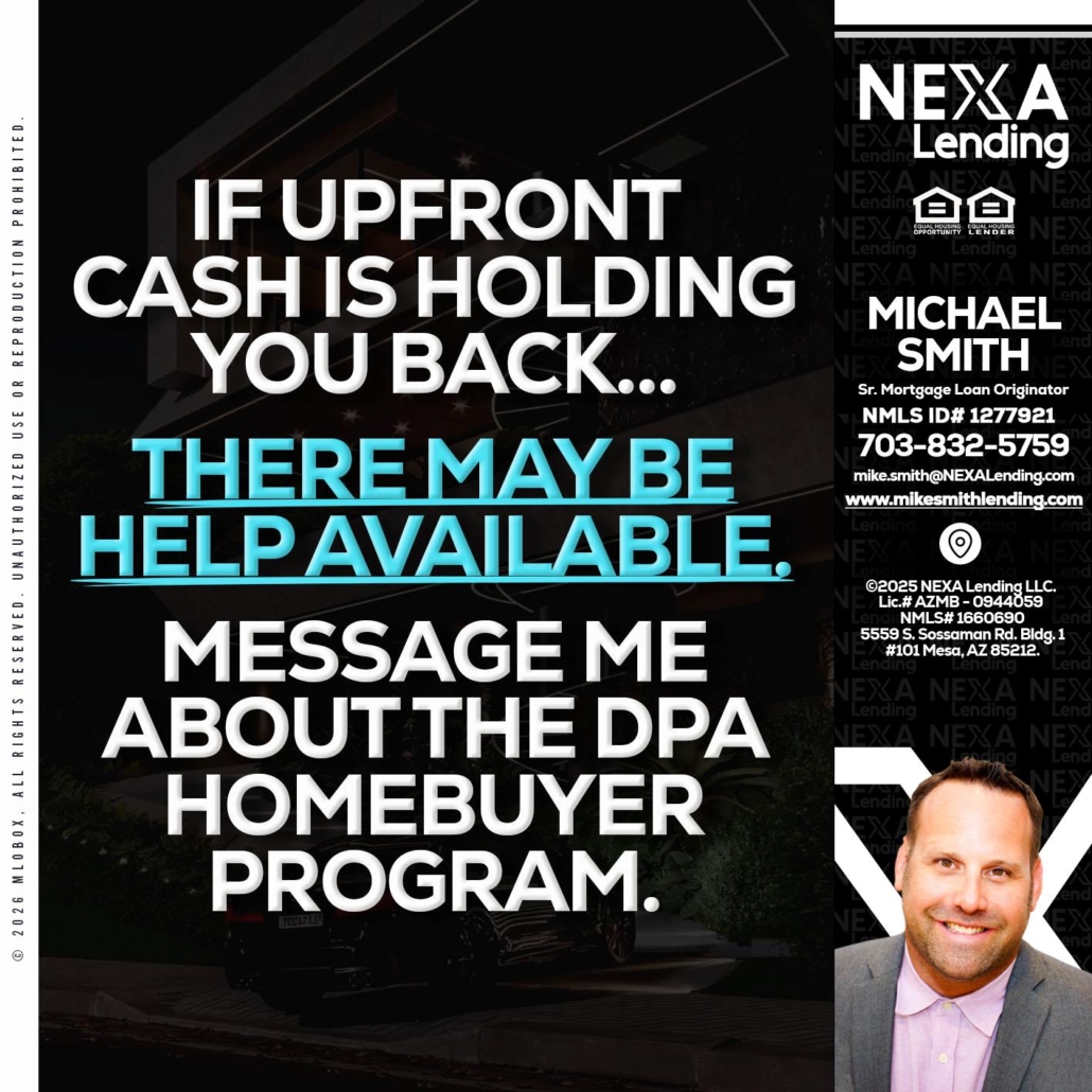Hi, my name is Mike Smith. I’m a Loan Officer with NEXA Lending LLC., offering personalized mortgage solutions, fast customized quotes, great rates and service with integrity.