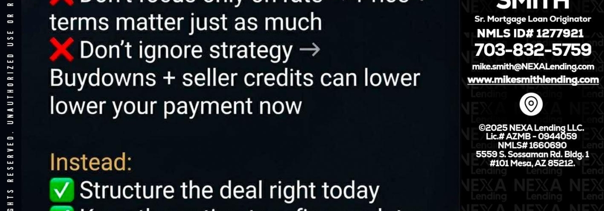 Hi, my name is Mike Smith. I’m a Loan Officer with NEXA Lending LLC., offering personalized mortgage solutions, fast customized quotes, great rates and service with integrity.