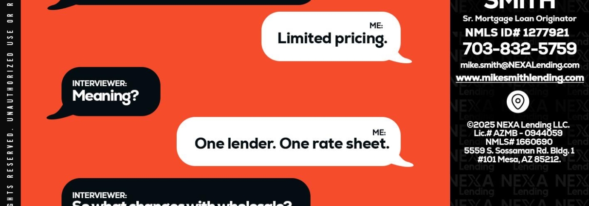 Q&A - Mike Smith -Senior Mortgage Loan OriginatorHi, my name is Mike Smith. I’m a Loan Officer with NEXA Lending LLC., offering personalized mortgage solutions, fast customized quotes, great rates and service with integrity.