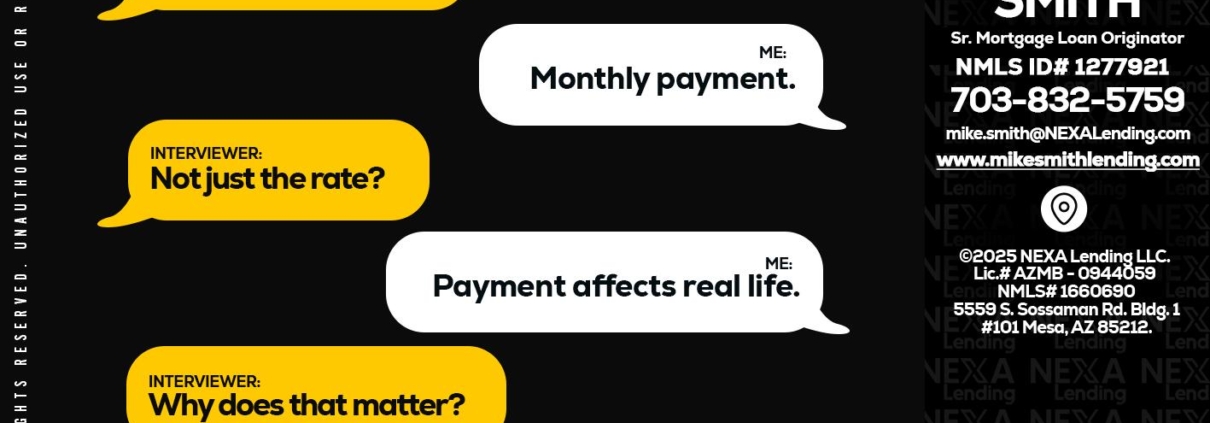 RAPID FIRE Q&A - Mike Smith -Senior Mortgage Loan OriginatorHi, my name is Mike Smith. I’m a Loan Officer with NEXA Lending LLC., offering personalized mortgage solutions, fast customized quotes, great rates and service with integrity.