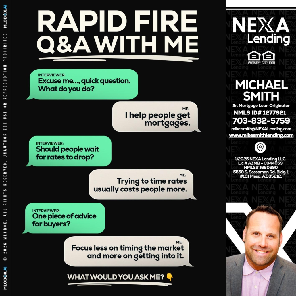 Hi, my name is Mike Smith. I’m a Loan Officer with NEXA Lending LLC., offering personalized mortgage solutions, fast customized quotes, great rates and service with integrity.