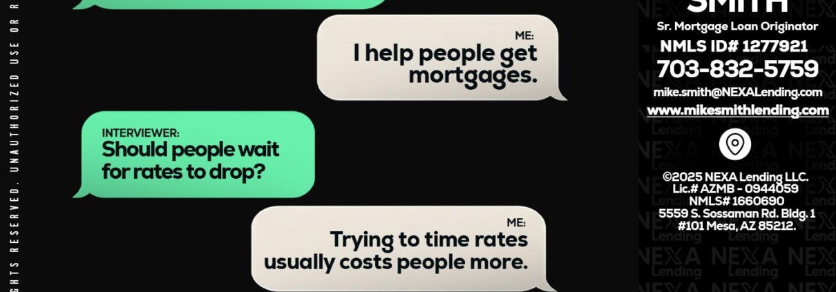 Hi, my name is Mike Smith. I’m a Loan Officer with NEXA Lending LLC., offering personalized mortgage solutions, fast customized quotes, great rates and service with integrity.